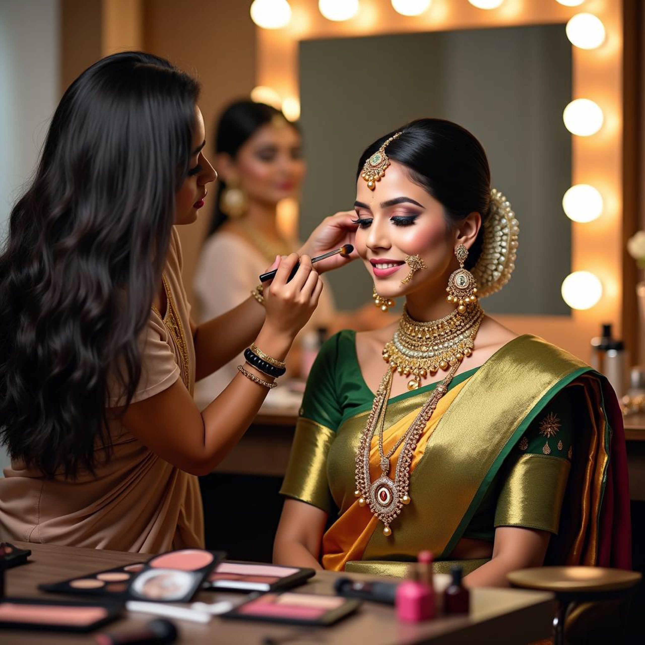hands of a hairdresser with a Curling iron making a hairstyle for a curly girl in a professional beauty salonMakeup Artist Applying Elegant Bridal Makeupwomen's manicure, nail extension process. High quality photo